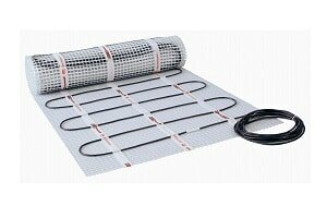 - Кабельные маты, укладываемые под плитку. Преимущества технологии – простой и быстрый монтаж, быстрый нагрев поверхности из-за меньшей толщины стяжки.